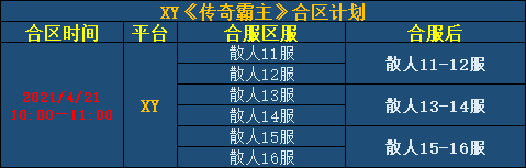 为了活跃游戏气氛,满足玩家需求,让广大玩家可以延续更激烈的战斗,XY《传奇霸主》将于以下时间进行合服操作,合服期间玩家将不能登录游戏,请各位玩家知晓并相互转告,感谢大家的支持!服务器会根据维护操作完成时间提前或者延迟开启,不便之处敬请体谅!