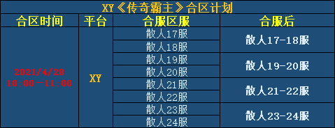 为了活跃游戏气氛,满足玩家需求,让广大玩家可以延续更激烈的战斗,XY《传奇霸主》将于以下时间进行合服操作,合服期间玩家将不能登录游戏,请各位玩家知晓并相互转告,感谢大家的支持!服务器会根据维护操作完成时间提前或者延迟开启,不便之处敬请体谅!